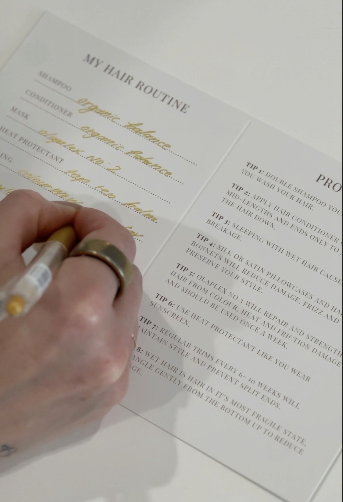 At the end of every appointment, we take the time to talk you through an ongoing hair-care routine. We’ll document any products we’ve used during your service, note how we’ve styled your hair, and even include some ‘pro-tips’ you can try at home.
